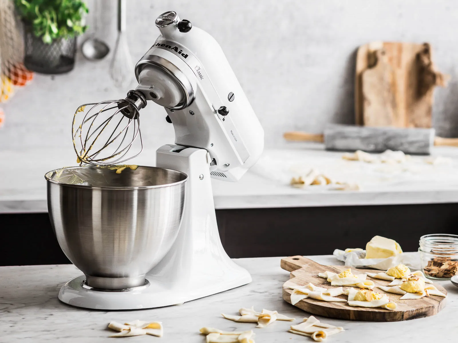 Планетарный миксер KitchenAid Classic оснащен нашей уникальной планетарной системой перемешивания. Вал вращается в одном направлении, а лопасти — в противоположном, создавая не менее 59 точек контакта внутри чаши. Это обеспечивает тщательное перемешивание всех ингредиентов, перемещая их в центр чаши.