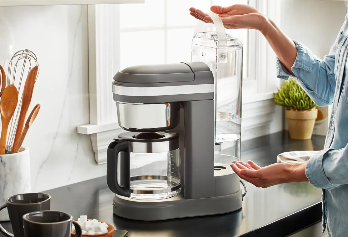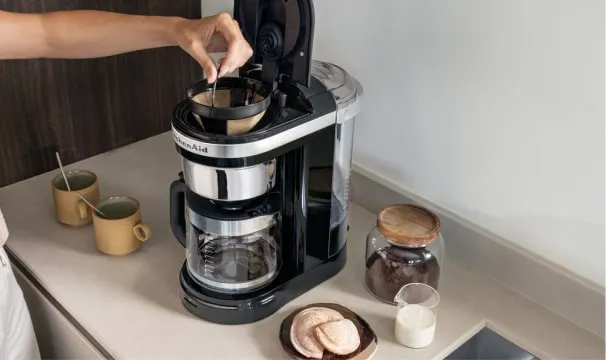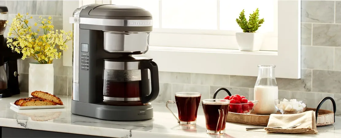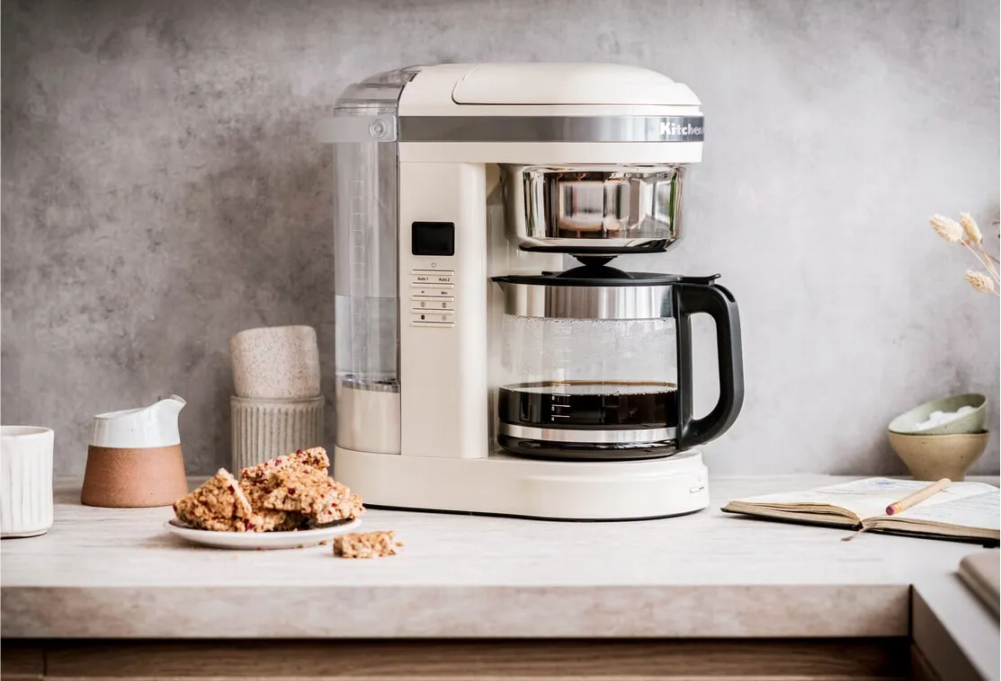 KitchenAid 5KCM1209 - это капельная кофеварка, которой вам будет приятно пользоваться каждый день. В ней сочетается удобное управление, большой объём графина, хватит на всю семью или небольшой офис, отличный вкус самого напитка и привлекательный дизайн.