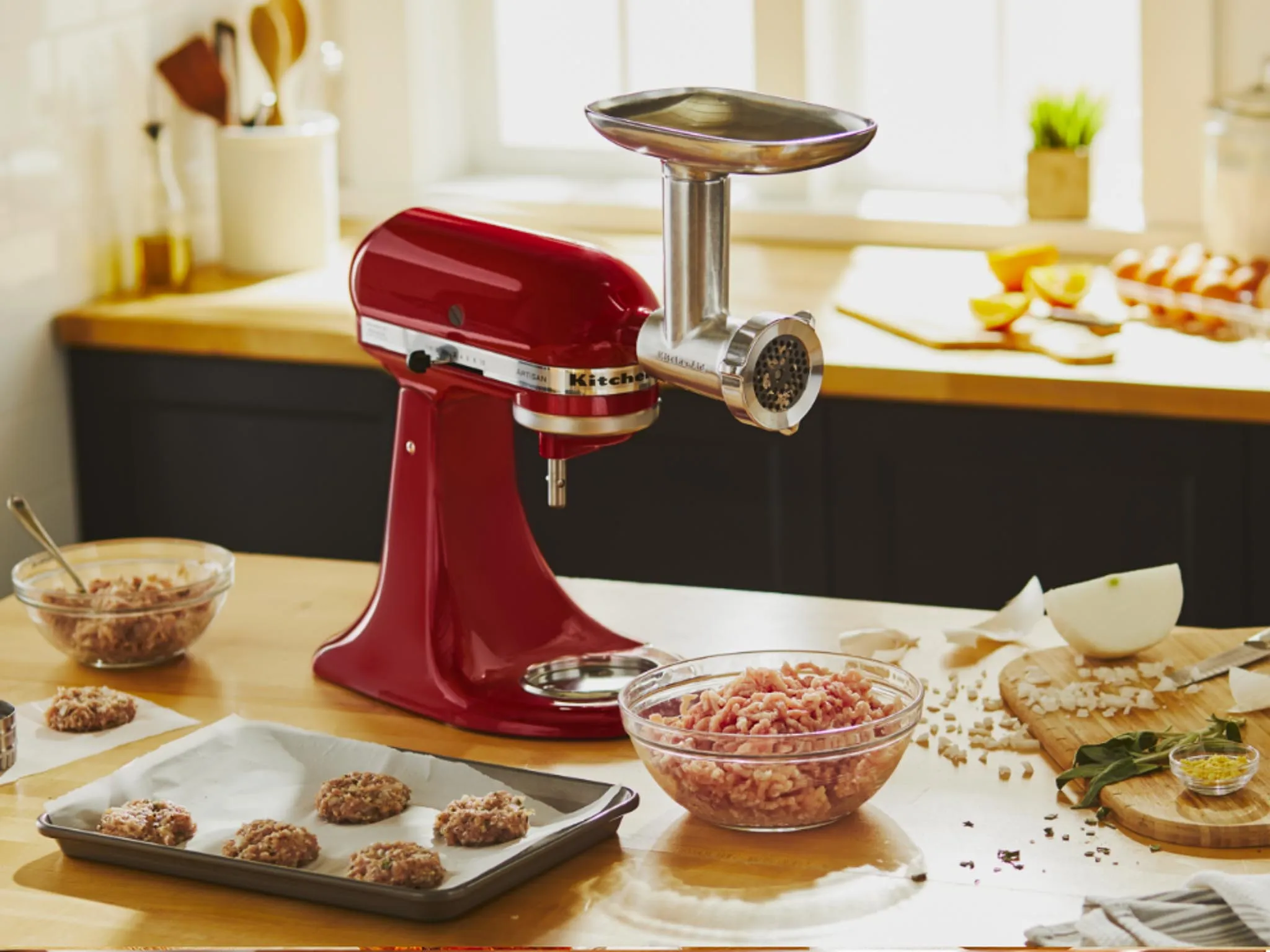Цельнометаллическая мясорубка с насадкой для колбас 5KSMMGA изготовлена из алюминия с дисками из нержавеющей стали, что делает ее чрезвычайно прочной. Она быстро и легко справится со всем, что вам нужно для ваших рецептов. Не бойтесь экспериментировать! Мясорубка без труда перерабатывает мясо, овощи, фрукты, орехи и сыр, позволяя вам добиться идеальной консистенции для ваших блюд.